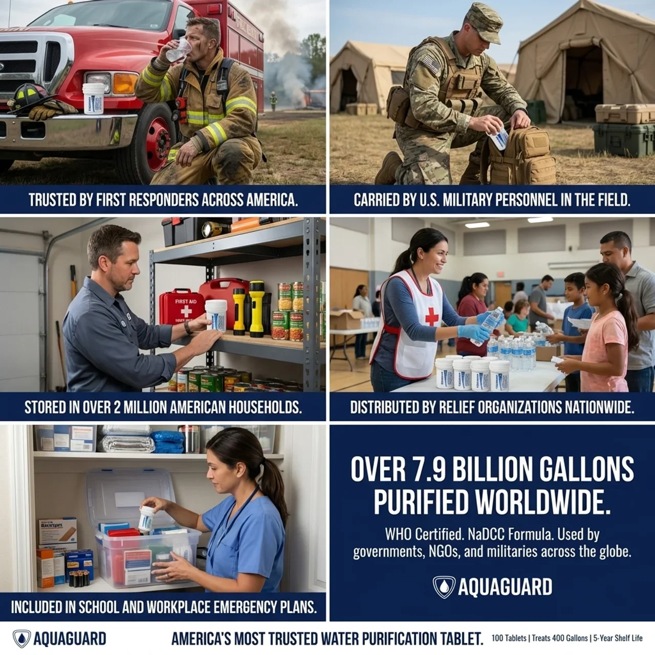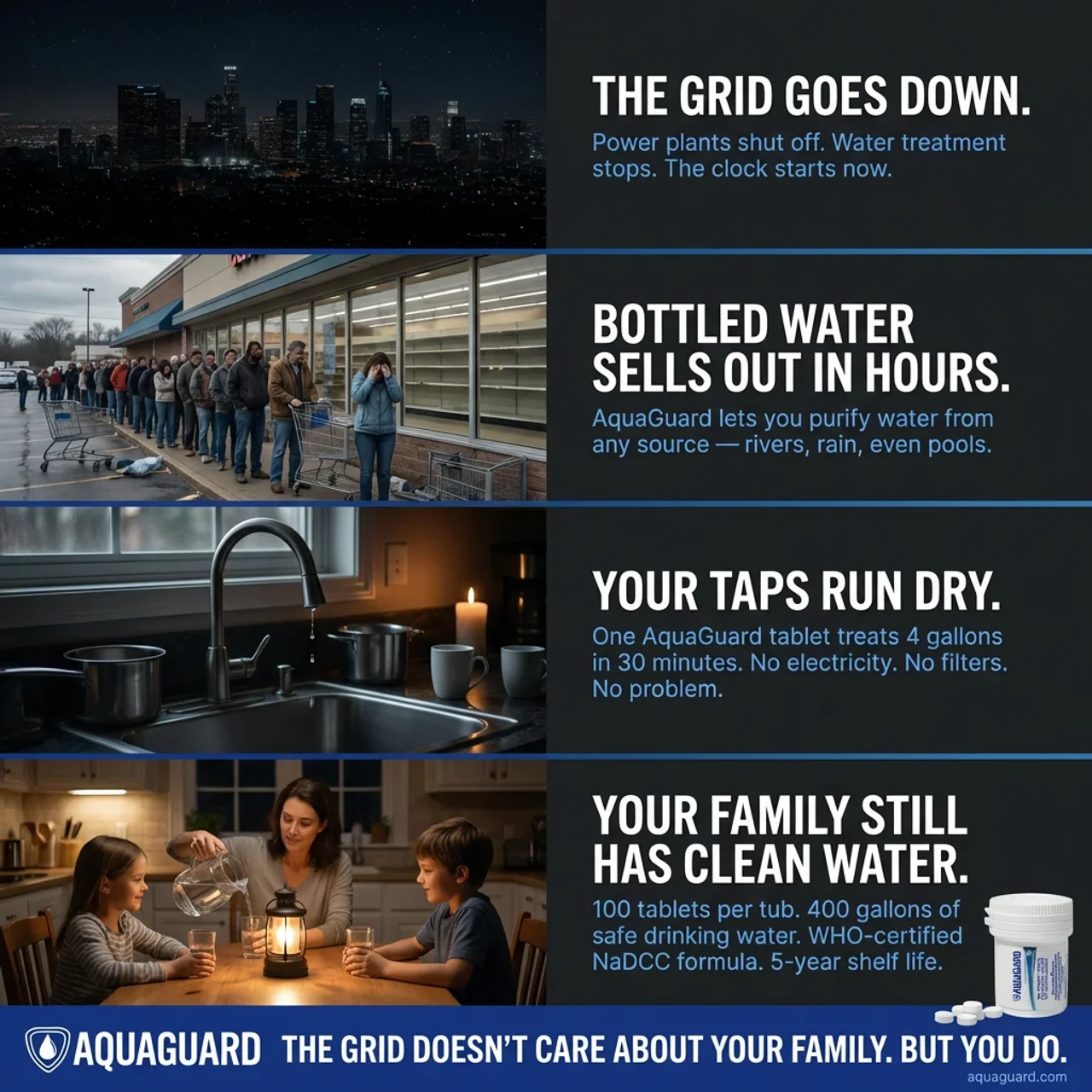 This is not a camping accessory. This is not a novelty item for your hiking bag. AquaGuard was built for the worst-case scenario. The one where the power is out, the stores are empty, the government is overwhelmed, and your family is looking at you asking, "What do we do now?"