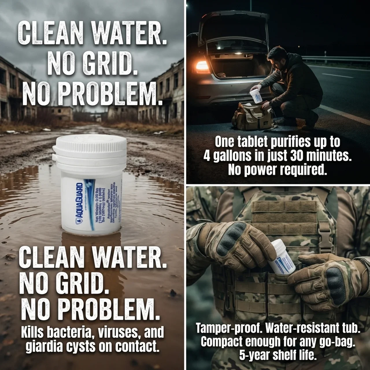 The Tablet That Turns Any Water Source Into Safe Drinking Water in 30 Minutes. No Power. No Filters. No Grid Required.